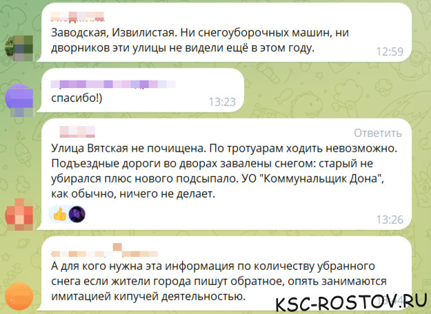 Однако сами ростовчане с такими оценками не согласны. В социальных сетях и городских пабликах жители массово сообщают, что во многих районах города дороги и тротуары остаются заваленными снегом.