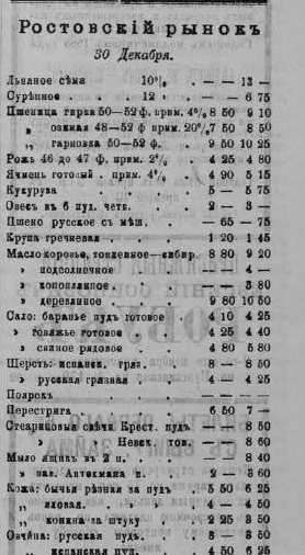 Также в газете печатали расписание поездов трех железных дорог Ростова. И цены на рынке, в том числе на вино ведром, сотню лимонов, мыло и свечи.