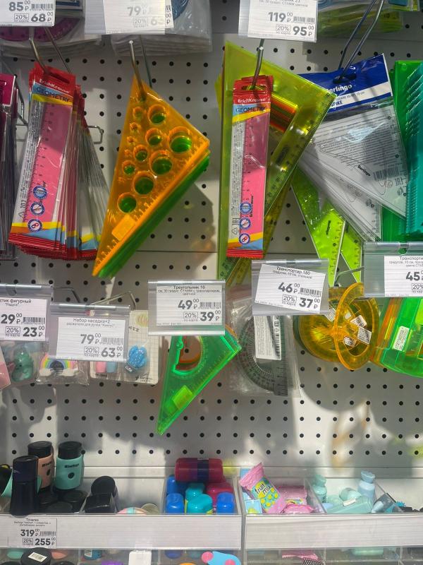 Одновременно ряд товаров подешевел. Средняя стоимость пенала снизилась на 14%, до 388 рублей, мешка для сменной обуви – на 13%, до 349 рублей, набора цветных карандашей – на 8%, до 243 рублей. Кисточки для рисования подешевели на 17% и продавались по 214 рублей, гуашь – на 14%, до 304 рублей. Фломастеры стоили 326 рублей, что на 21% ниже прошлогоднего уровня, линейка – 136 рублей (-6%), пластилин – 296 рублей (-2%). В то же время акварельные краски подорожали на 17%, до 387 рублей, а набор стиральных резинок прибавил в цене 2% и составил 172 рубля.